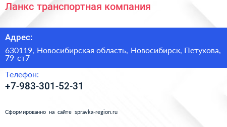 Ланкс, транспортная компания по адресу 630119, Новосибирская область, Новосибирск, Петухова, 79 ст7 в дальнейшем Организация, размещена в следующих категориях: