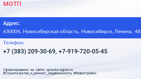 МОТП по адресу 630004, Новосибирская область, Новосибирск, Ленина, 48 в дальнейшем Организация, размещена в следующих категориях: