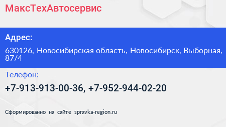 МаксТехАвтосервис по адресу 630126, Новосибирская область, Новосибирск, Выборная, 87/4 в дальнейшем Организация, размещена в следующих категориях: