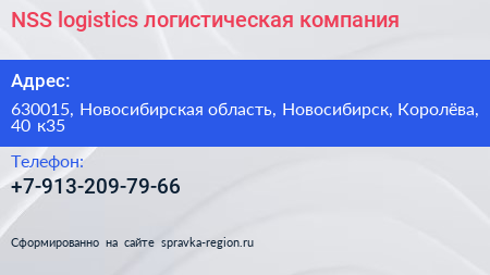 NSS-logistics, логистическая компания по адресу 630015, Новосибирская область, Новосибирск, Королёва, 40 к35 в дальнейшем Организация, размещена в следующих категориях: