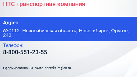 НТС, транспортная компания по адресу 630112, Новосибирская область, Новосибирск, Фрунзе, 242 в дальнейшем Организация, размещена в следующих категориях: