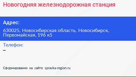 Новогодняя, железнодорожная станция по адресу 630025, Новосибирская область, Новосибирск, Первомайская, 196 к5 в дальнейшем Организация, размещена в следующих категориях: