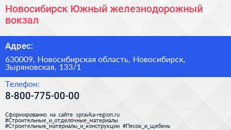 Новосибирск-Южный, железнодорожный вокзал по адресу 630009, Новосибирская область, Новосибирск, Зыряновская, 133/1 в дальнейшем Организация, размещена в следующих категориях: