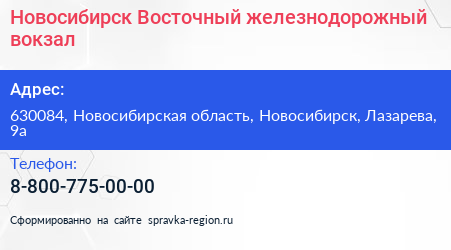 Новосибирск-Восточный, железнодорожный вокзал по адресу 630084, Новосибирская область, Новосибирск, Лазарева, 9а в дальнейшем Организация, размещена в следующих категориях:
