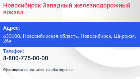 Новосибирск-Западный, железнодорожный вокзал по адресу 630108, Новосибирская область, Новосибирск, Широкая, 26а в дальнейшем Организация, размещена в следующих категориях: