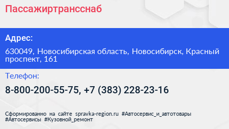 Пассажиртрансснаб по адресу 630049, Новосибирская область, Новосибирск, Красный проспект, 161 в дальнейшем Организация, размещена в следующих категориях: