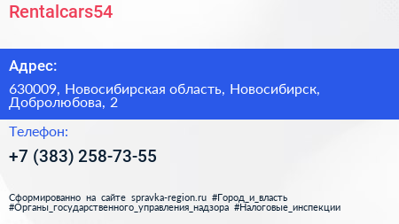 Rentalcars54 по адресу 630009, Новосибирская область, Новосибирск, Добролюбова, 2 в дальнейшем Организация, размещена в следующих категориях: