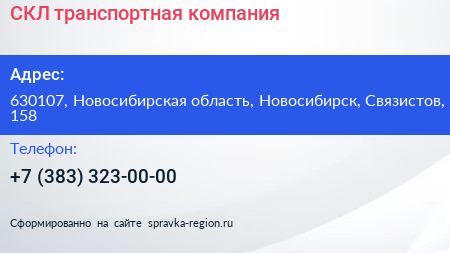 СКЛ, транспортная компания по адресу 630107, Новосибирская область, Новосибирск, Связистов, 158 в дальнейшем Организация, размещена в следующих категориях: