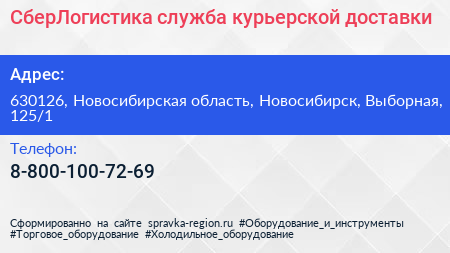 СберЛогистика, служба курьерской доставки по адресу 630126, Новосибирская область, Новосибирск, Выборная, 125/1 в дальнейшем Организация, размещена в следующих категориях:
