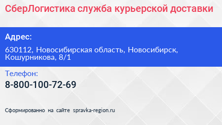 СберЛогистика, служба курьерской доставки по адресу 630112, Новосибирская область, Новосибирск, Кошурникова, 8/1 в дальнейшем Организация, размещена в следующих категориях: