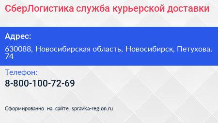 СберЛогистика, служба курьерской доставки по адресу 630088, Новосибирская область, Новосибирск, Петухова, 74 в дальнейшем Организация, размещена в следующих категориях: