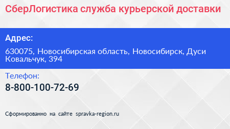 СберЛогистика, служба курьерской доставки по адресу 630075, Новосибирская область, Новосибирск, Дуси Ковальчук, 394 в дальнейшем Организация, размещена в следующих категориях: