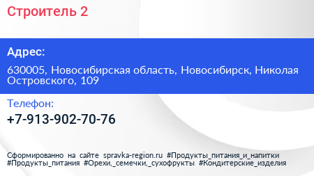 Строитель-2 по адресу 630005, Новосибирская область, Новосибирск, Николая Островского, 109 в дальнейшем Организация, размещена в следующих категориях: