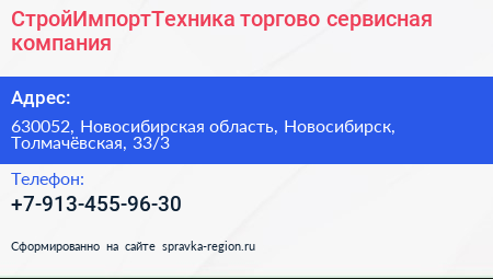 СтройИмпортТехника, торгово-сервисная компания по адресу 630052, Новосибирская область, Новосибирск, Толмачёвская, 33/3 в дальнейшем Организация, размещена в следующих категориях: