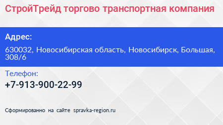 СтройТрейд, торгово-транспортная компания по адресу 630032, Новосибирская область, Новосибирск, Большая, 308/6 в дальнейшем Организация, размещена в следующих категориях:
