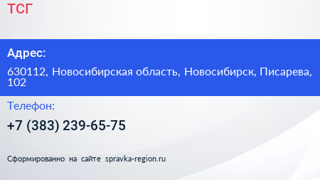 ТСГ по адресу 630112, Новосибирская область, Новосибирск, Писарева, 102 в дальнейшем Организация, размещена в следующих категориях: