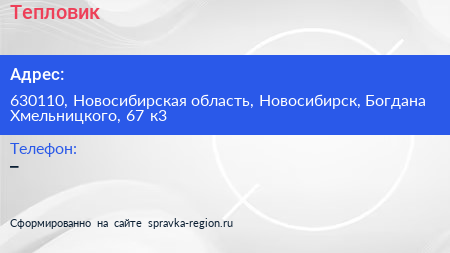 Тепловик по адресу 630110, Новосибирская область, Новосибирск, Богдана Хмельницкого, 67 к3 в дальнейшем Организация, размещена в следующих категориях: