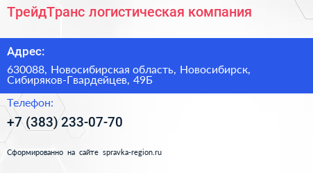 ТрейдТранс, логистическая компания по адресу 630088, Новосибирская область, Новосибирск, Сибиряков-Гвардейцев, 49Б в дальнейшем Организация, размещена в следующих категориях:
