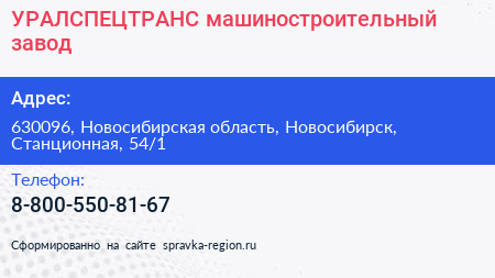 УРАЛСПЕЦТРАНС, машиностроительный завод по адресу 630096, Новосибирская область, Новосибирск, Станционная, 54/1 в дальнейшем Организация, размещена в следующих категориях:
