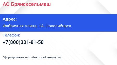 АО «Брянсксельмаш» по адресу Фабричная улица, 14, Новосибирск в дальнейшем Организация, размещена в следующих категориях: