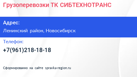 Грузоперевозки ТК СИБТЕХНОТРАНС по адресу Ленинский район, Новосибирск в дальнейшем Организация, размещена в следующих категориях: