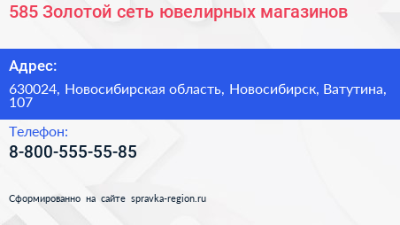 585*Золотой, сеть ювелирных магазинов по адресу 630024, Новосибирская область, Новосибирск, Ватутина, 107 в дальнейшем Организация, размещена в следующих категориях: