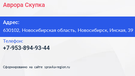 Аврора Скупка по адресу 630102, Новосибирская область, Новосибирск, Инская, 39 в дальнейшем Организация, размещена в следующих категориях:
