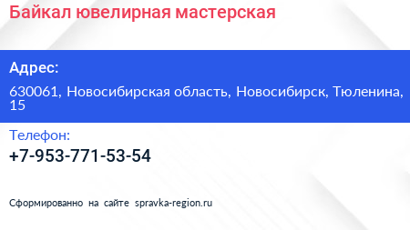 Байкал, ювелирная мастерская по адресу 630061, Новосибирская область, Новосибирск, Тюленина, 15 в дальнейшем Организация, размещена в следующих категориях: