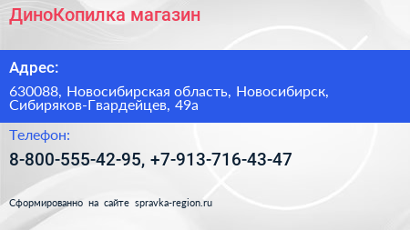 ДиноКопилка, магазин по адресу 630088, Новосибирская область, Новосибирск, Сибиряков-Гвардейцев, 49а в дальнейшем Организация, размещена в следующих категориях: