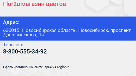 Flor2u, магазин цветов по адресу 630015, Новосибирская область, Новосибирск, проспект Дзержинского, 1а в дальнейшем Организация, размещена в следующих категориях: