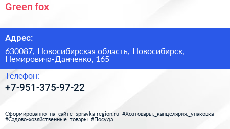 Green fox по адресу 630087, Новосибирская область, Новосибирск, Немировича-Данченко, 165 в дальнейшем Организация, размещена в следующих категориях: