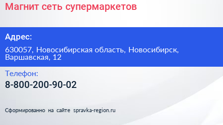 Магнит, сеть супермаркетов по адресу 630057, Новосибирская область, Новосибирск, Варшавская, 12 в дальнейшем Организация, размещена в следующих категориях: