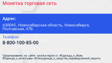 Монетка, торговая сеть по адресу 630045, Новосибирская область, Новосибирск, Полтавская, 47Б в дальнейшем Организация, размещена в следующих категориях: