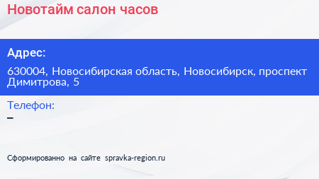 Новотайм, салон часов по адресу 630004, Новосибирская область, Новосибирск, проспект Димитрова, 5 в дальнейшем Организация, размещена в следующих категориях: