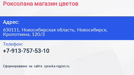 Роксолана, магазин цветов по адресу 630111, Новосибирская область, Новосибирск, Кропоткина, 120/3 в дальнейшем Организация, размещена в следующих категориях: