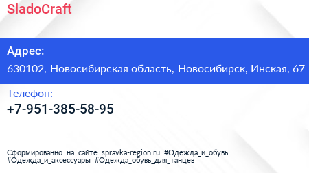 SladoCraft по адресу 630102, Новосибирская область, Новосибирск, Инская, 67 в дальнейшем Организация, размещена в следующих категориях: