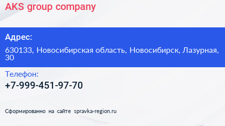 AKS group company по адресу 630133, Новосибирская область, Новосибирск, Лазурная, 30 в дальнейшем Организация, размещена в следующих категориях: