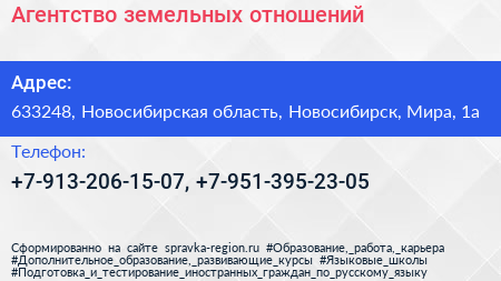 Агентство земельных отношений по адресу 633248, Новосибирская область, Новосибирск, Мира, 1а в дальнейшем Организация, размещена в следующих категориях: