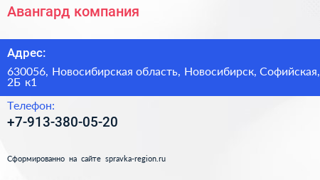Авангард, компания по адресу 630056, Новосибирская область, Новосибирск, Софийская, 2Б к1 в дальнейшем Организация, размещена в следующих категориях: