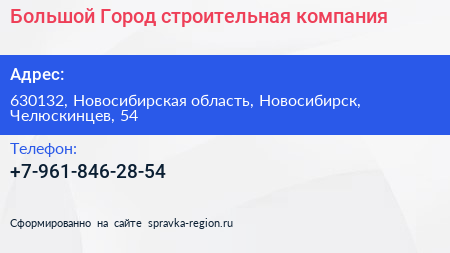 Большой Город, строительная компания по адресу 630132, Новосибирская область, Новосибирск, Челюскинцев, 54 в дальнейшем Организация, размещена в следующих категориях: