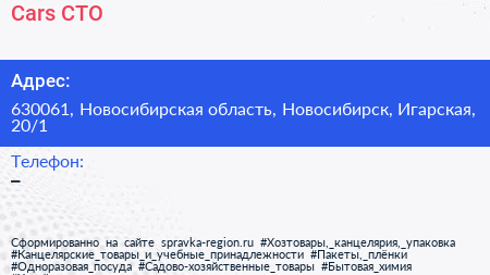 Cars, СТО по адресу 630061, Новосибирская область, Новосибирск, Игарская, 20/1 в дальнейшем Организация, размещена в следующих категориях: