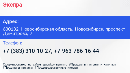 Экспра по адресу 630132, Новосибирская область, Новосибирск, проспект Димитрова, 7 в дальнейшем Организация, размещена в следующих категориях: