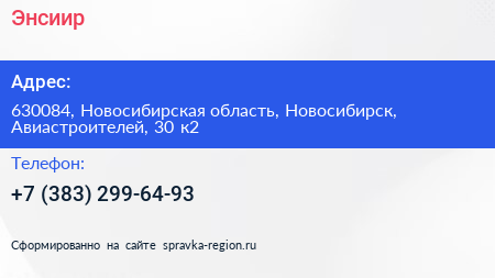 Энсиир по адресу 630084, Новосибирская область, Новосибирск, Авиастроителей, 30 к2 в дальнейшем Организация, размещена в следующих категориях: