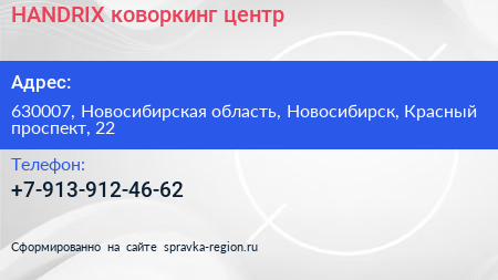 HANDRIX, коворкинг-центр по адресу 630007, Новосибирская область, Новосибирск, Красный проспект, 22 в дальнейшем Организация, размещена в следующих категориях: