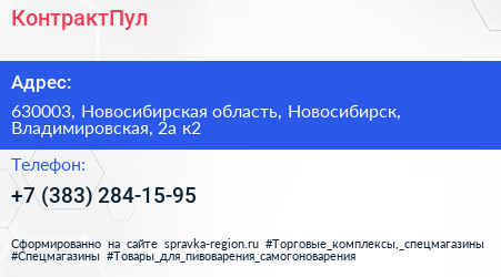 КонтрактПул по адресу 630003, Новосибирская область, Новосибирск, Владимировская, 2а к2 в дальнейшем Организация, размещена в следующих категориях: