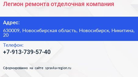 Легион ремонта, отделочная компания по адресу 630009, Новосибирская область, Новосибирск, Никитина, 20 в дальнейшем Организация, размещена в следующих категориях: