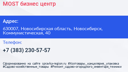 MOST, бизнес-центр по адресу 630007, Новосибирская область, Новосибирск, Коммунистическая, 40 в дальнейшем Организация, размещена в следующих категориях: