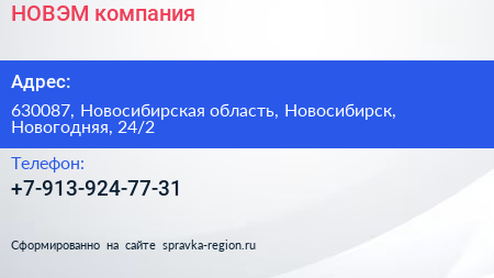 НОВЭМ, компания по адресу 630087, Новосибирская область, Новосибирск, Новогодняя, 24/2 в дальнейшем Организация, размещена в следующих категориях: