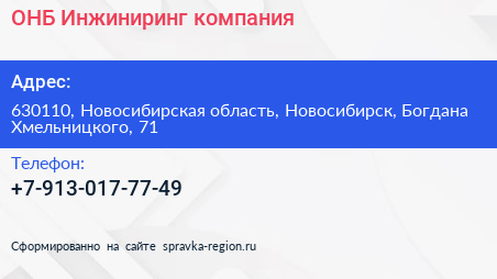 ОНБ Инжиниринг, компания по адресу 630110, Новосибирская область, Новосибирск, Богдана Хмельницкого, 71 в дальнейшем Организация, размещена в следующих категориях: