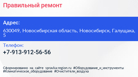 Правильный ремонт по адресу 630049, Новосибирская область, Новосибирск, Галущака, 5 в дальнейшем Организация, размещена в следующих категориях: